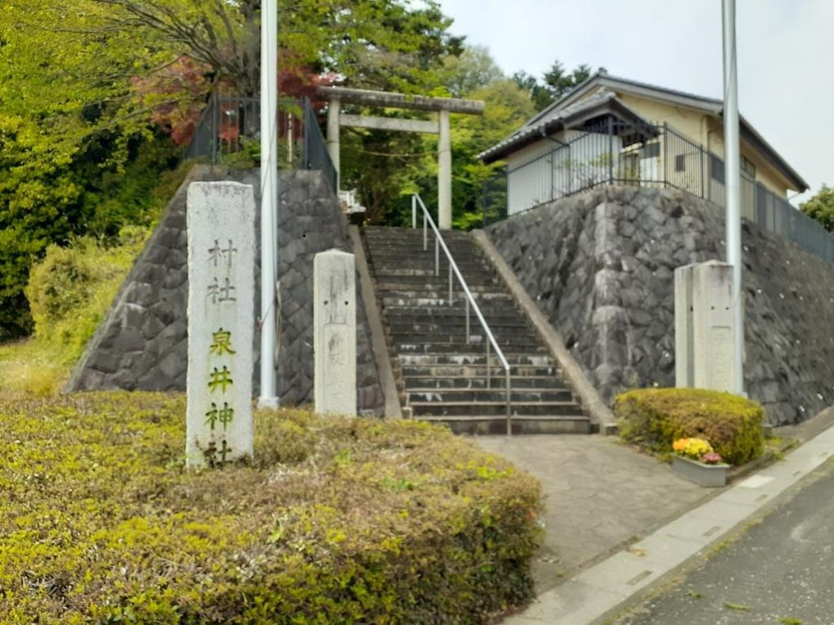 熊井黒石神社から一旦東方向に進み、「上熊井農産物直売所・ちょっくま)付近の丁字路を左折する。通称「亀小通り」を北上、鳩山町立亀井小学校を過ぎた「泉井地区集落センター」に隣接して泉井神社は鎮座している。因みに「泉井」と書いて「いずい」と読む。