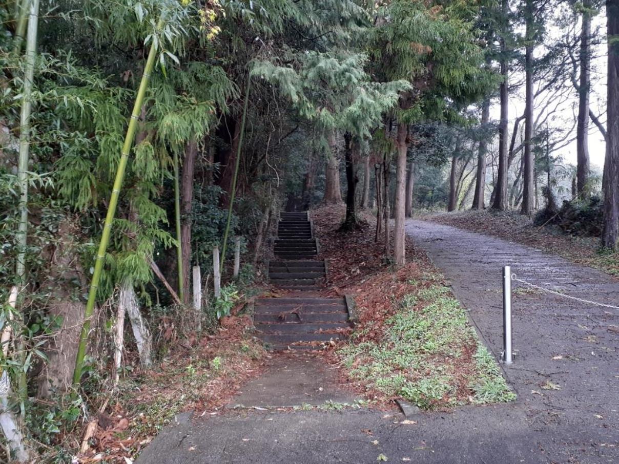イチイガシの左側脇に通っている道は社に通じる参道にもなっているようだ(写真左・右)。理由は分からないが、この社には鳥居がなく、社号標も見当たらなかった。