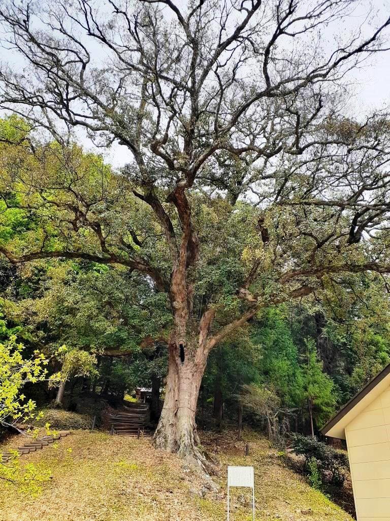 この大木は、樹高約二〇m、樹齢が四百年とも六百年とも言われ、八幡神社の御神木として地元の方々によって大切に守られてきました。平成五年九月一六日に、現名称に変更いたしました。