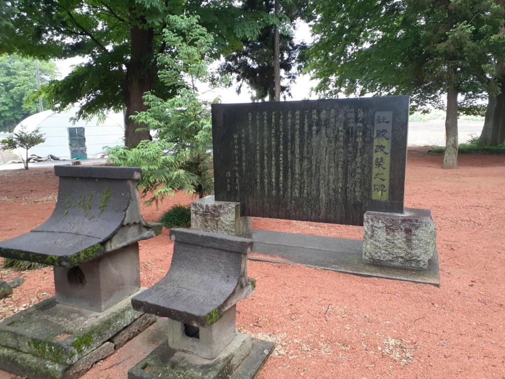 当社は、元は大豆戸との境の大沼付近にあり丘陵を背に鎮座していたが、昭和二十七、八年ごろに村の中心である現社地に移転した。