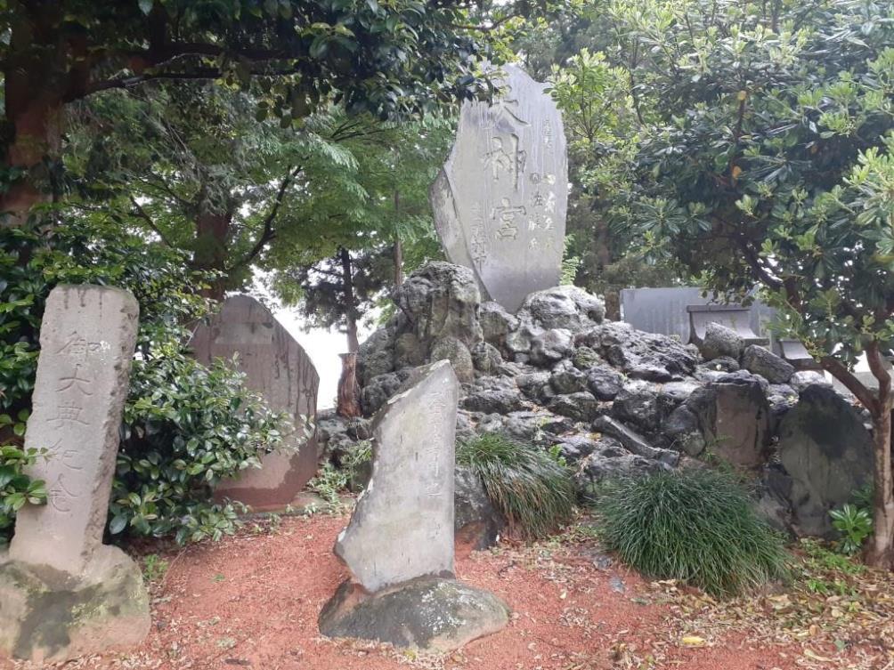 境内にある「遷宮記念碑」また「埼玉の神社」を確認すると、以前はこの場所から北西方向に700m程の所で、大豆戸地域との境の大沼村付近にあり丘陵を背に鎮座していたが、昭和27、8年頃に村の中心である現社地に移転したという。