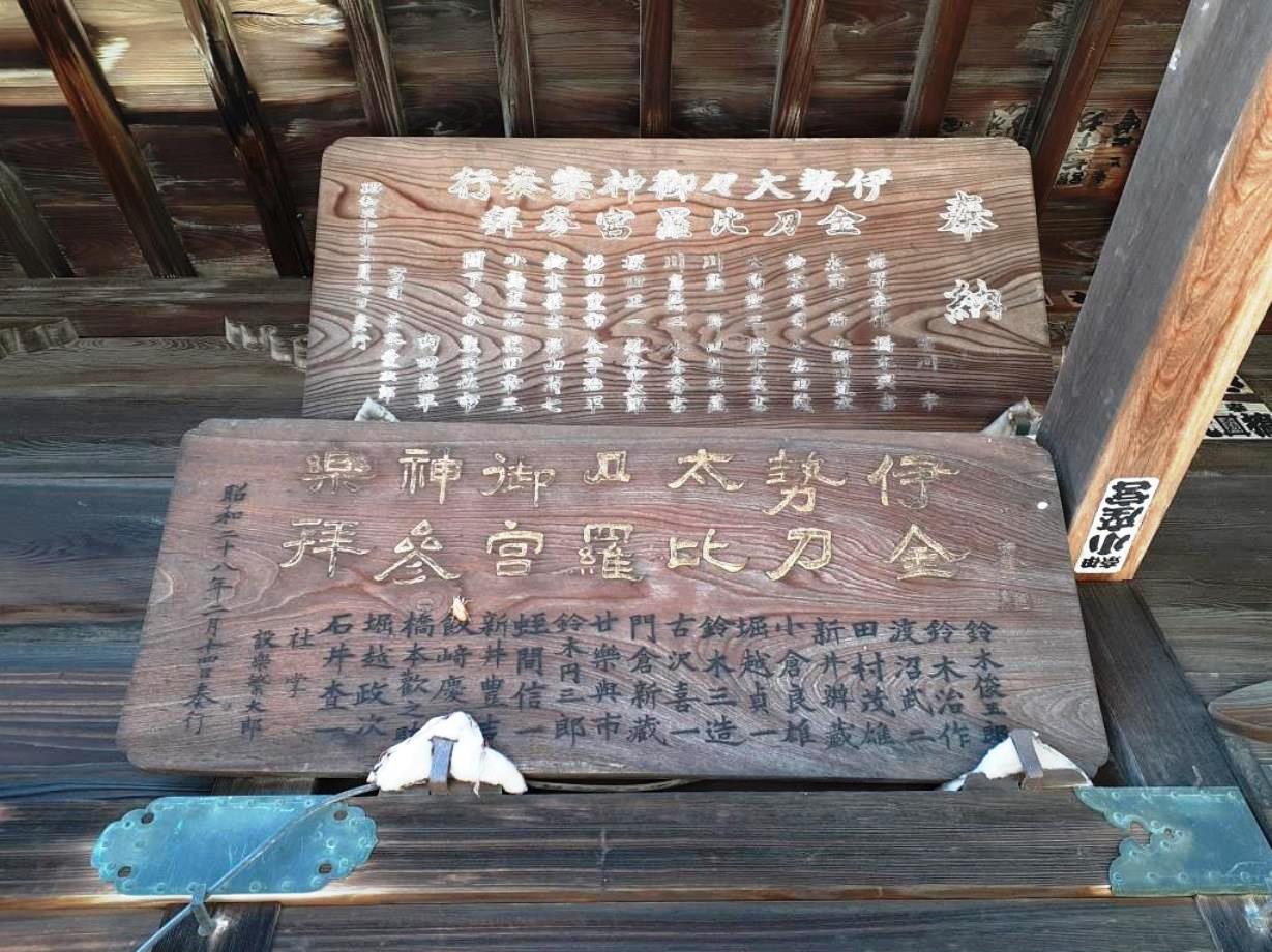 拝殿上部に奉納されている木製のプロペラ