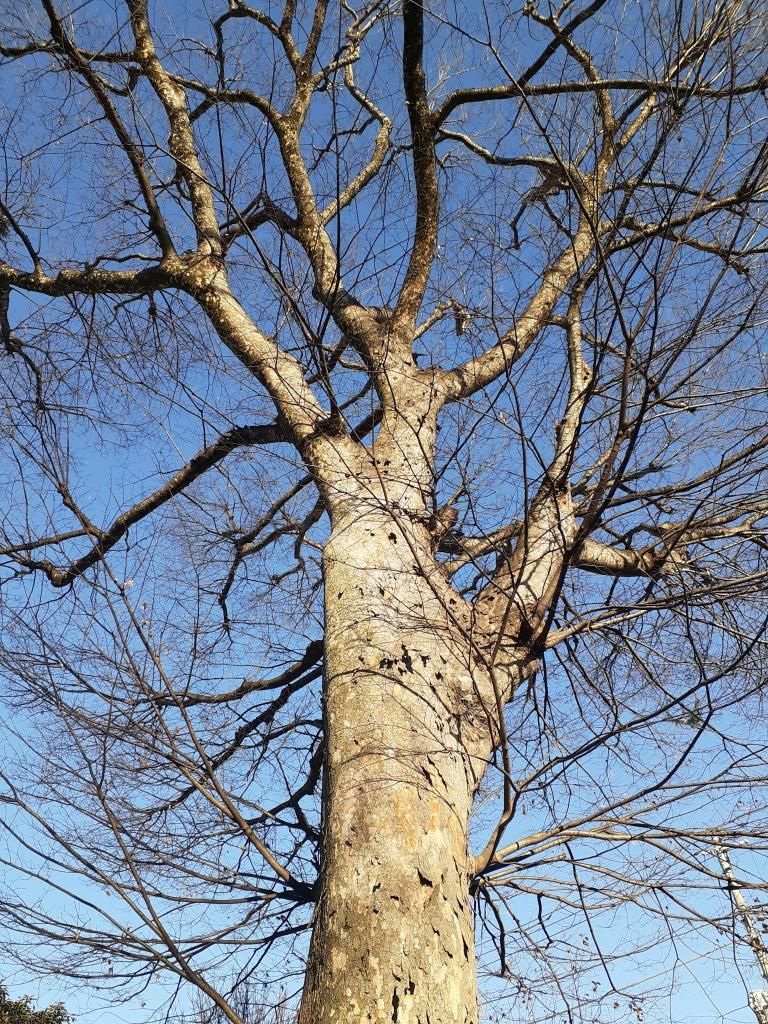 参道正面左側に聳え立つご神木(写真左・右)