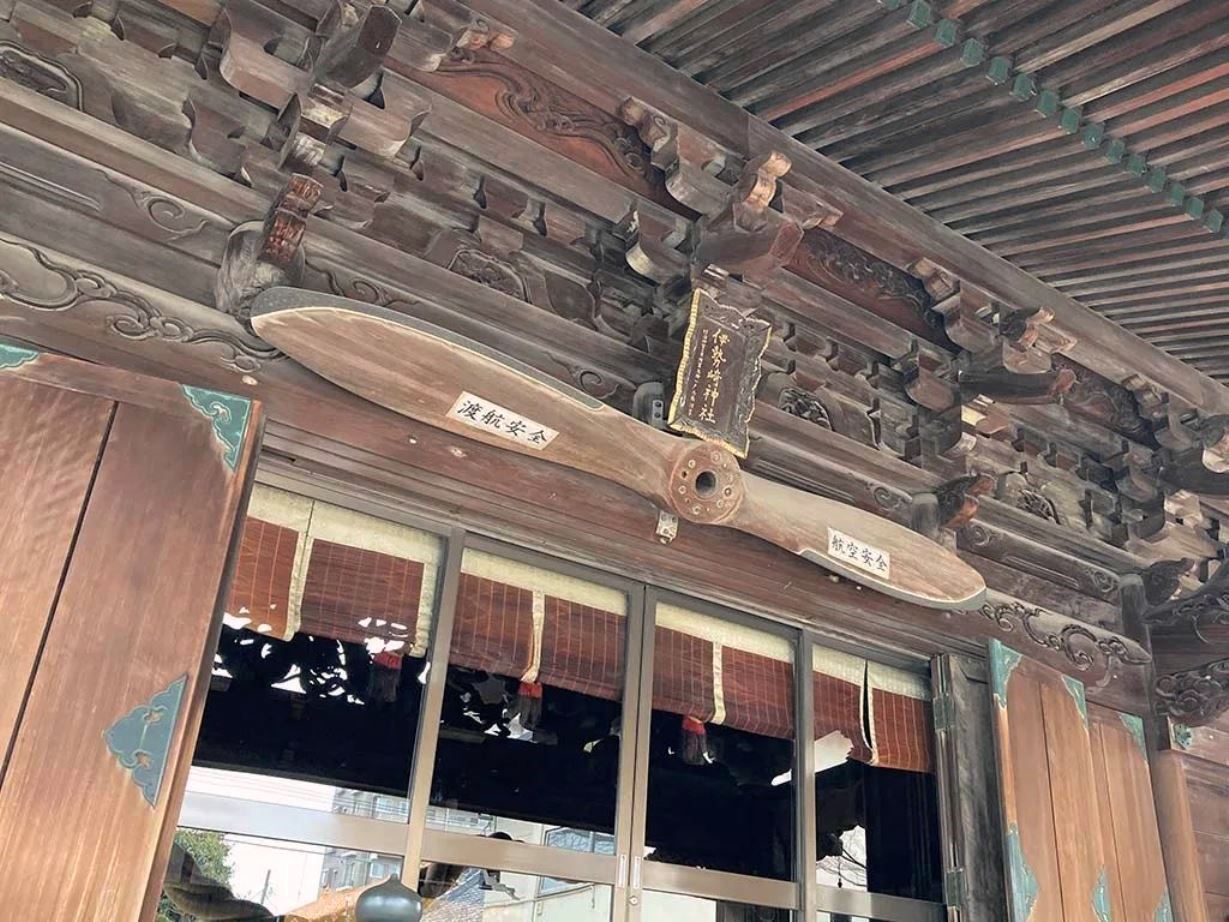 拝殿上部に奉納されている木製のプロペラ