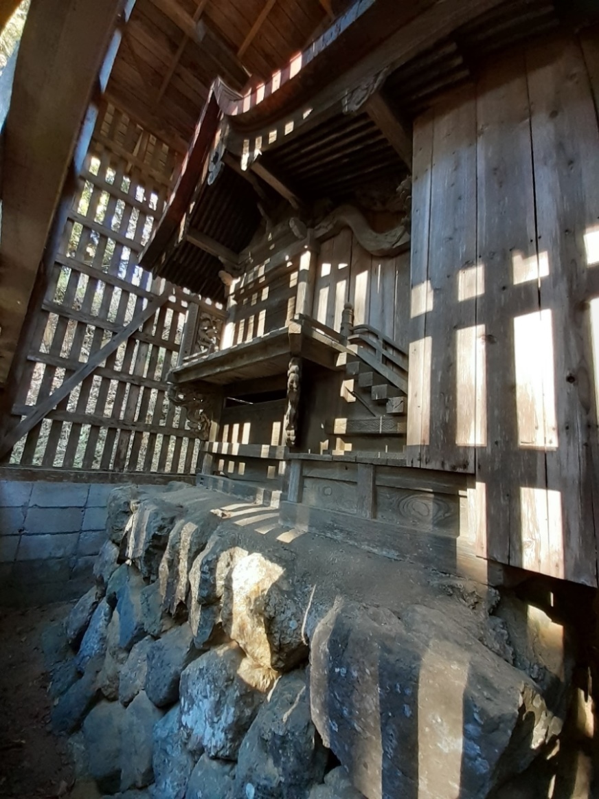 社殿の左側にひっそちと祀られている境内社・石祠。