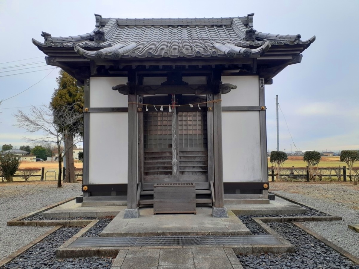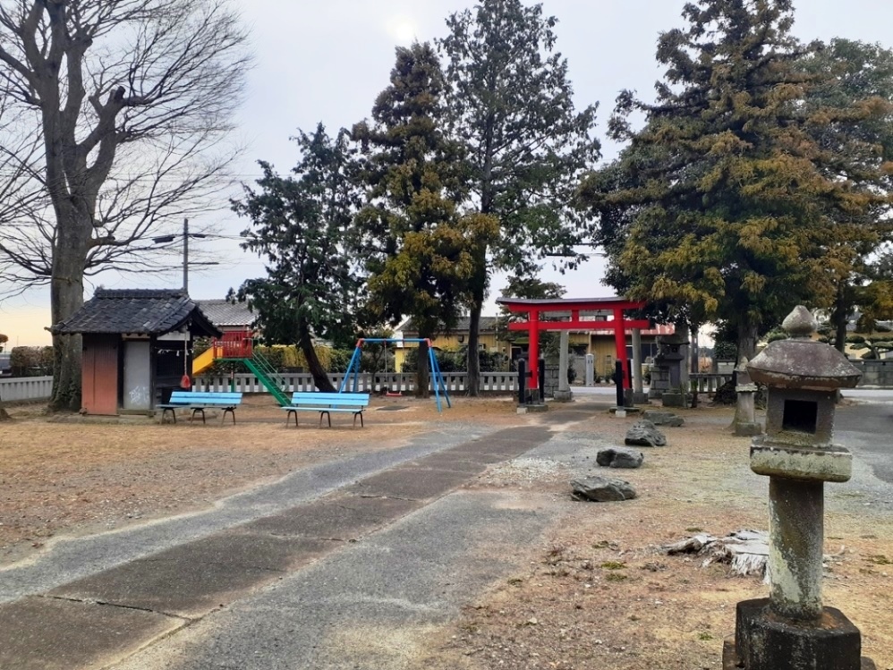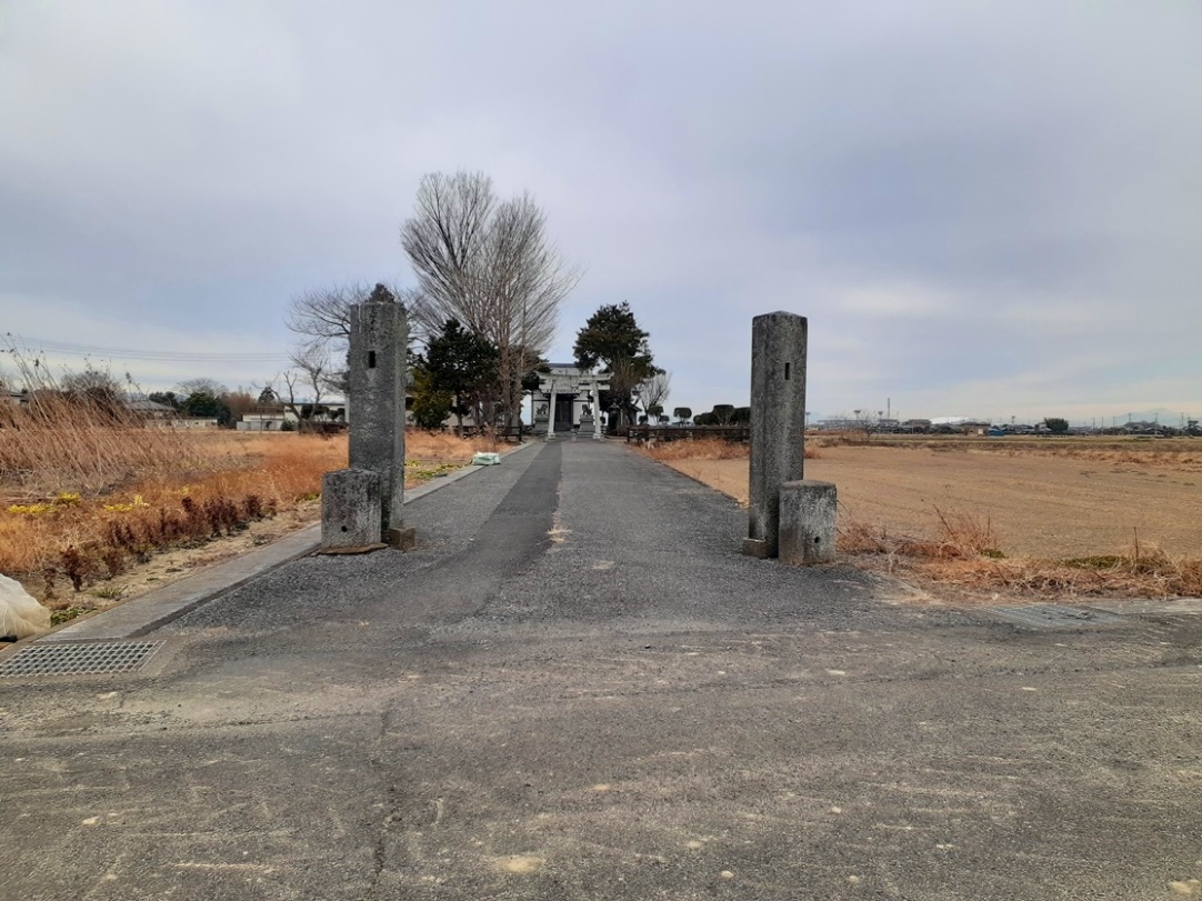 行田市馬見塚地域西南部に鎮座する。事前のレクチャーが不足していたのだろうが、南河原・河原神社から中江袋剣神社に向かう途中の道路東側にこの社は鎮座していたのを気付かずに通り過ぎていて、中江袋剣神社から500m程しか離れていない。