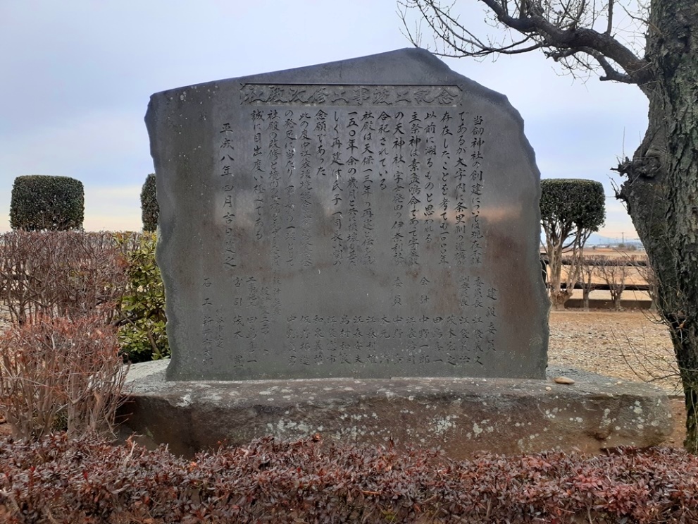 に曲がる為、社殿は東向きとなる。 記念碑等が集中的に置かれている。
