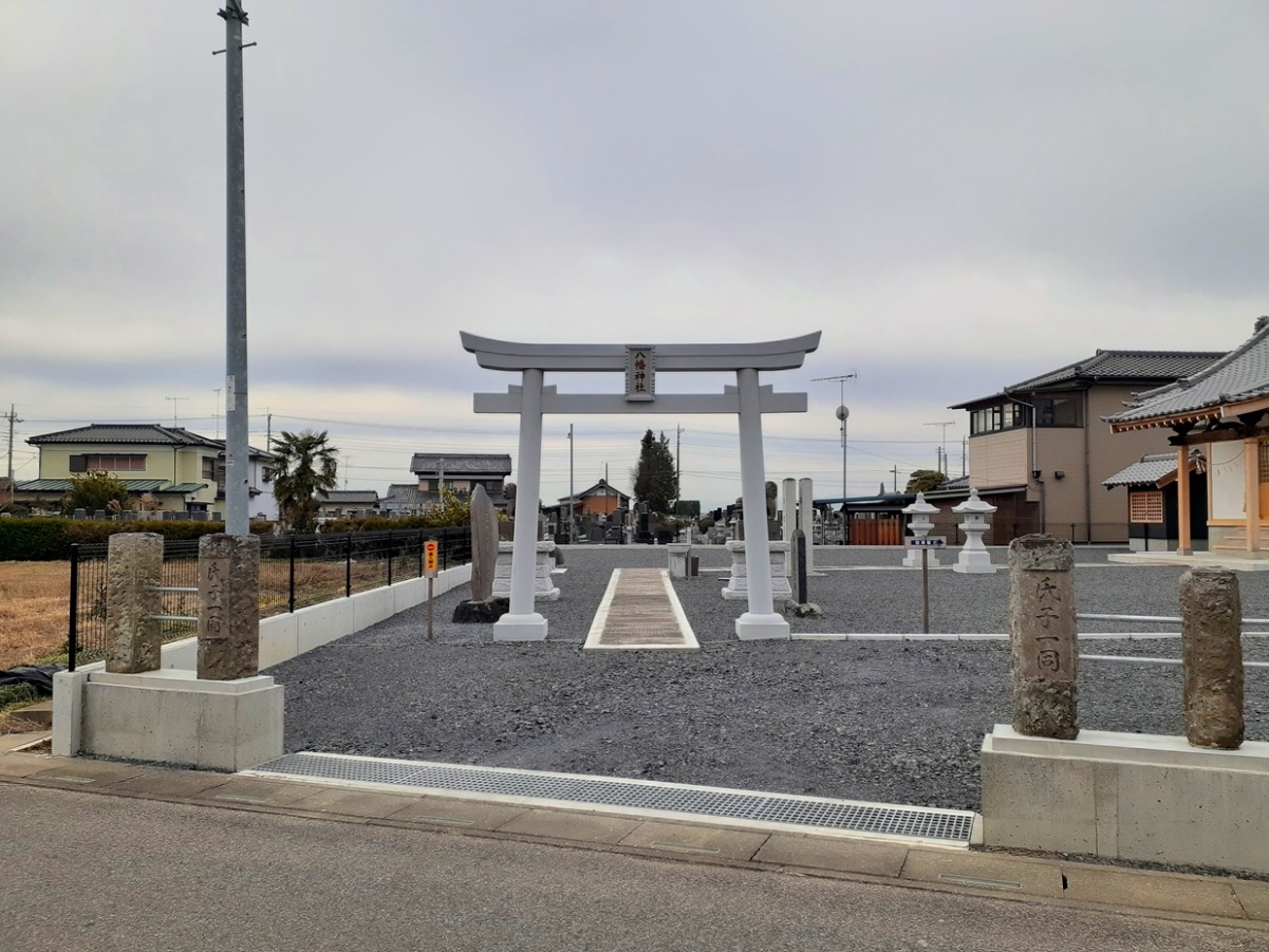 利根川堤防のすぐ南側に鎮座する酒巻八幡神社