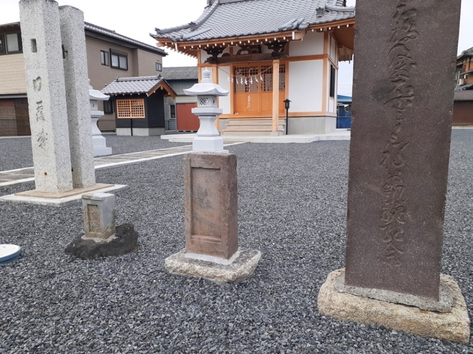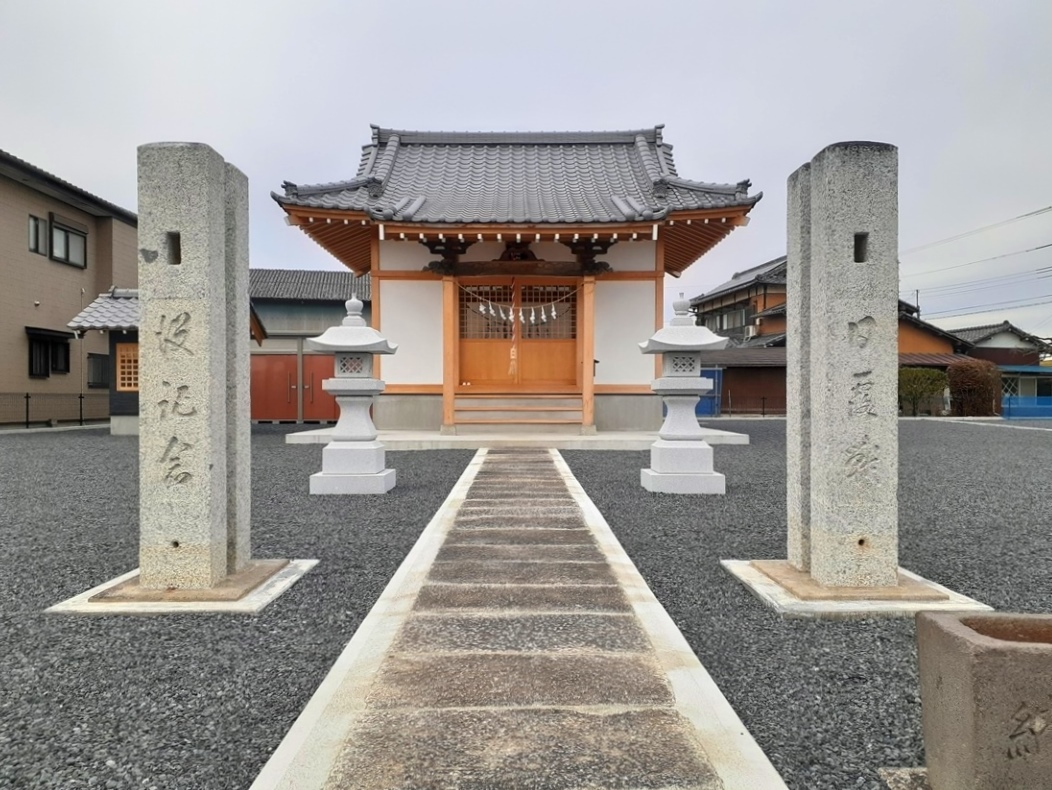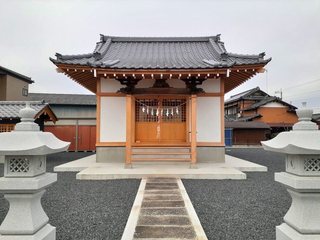 石祠等3基は古い形状でもあり、移設の際に、そのまま持ち込まれたものと思われる。また社殿に関しても、その木材の色の違いから、特に向拝部・木鼻部等、昔の社殿の一部で、再利用できるものはそのまま使用しているようである。