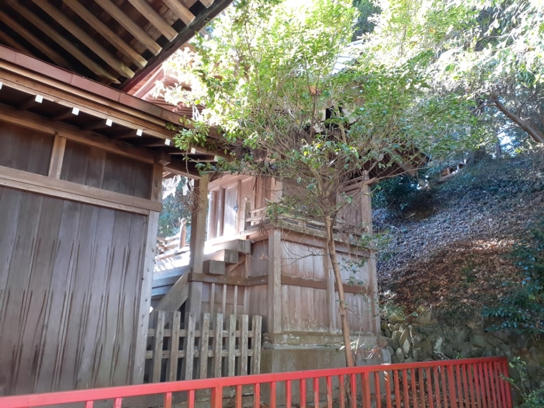 社殿の左側にひっそちと祀られている境内社・石祠。