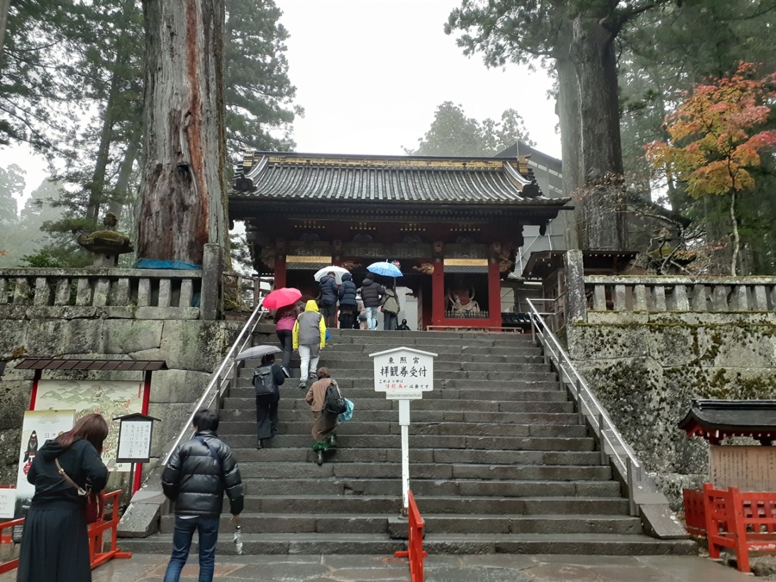 昨日は東照宮、二荒山神社等雨交じりの天候での参拝であったが、本日は雲もあまり見えない程の澄み渡った晴天。但し風がやや強く、肌寒さも感じる。海抜高度1,269m故だろう。事前に防寒着であるジャンバーを着込んでから参拝を開始する。