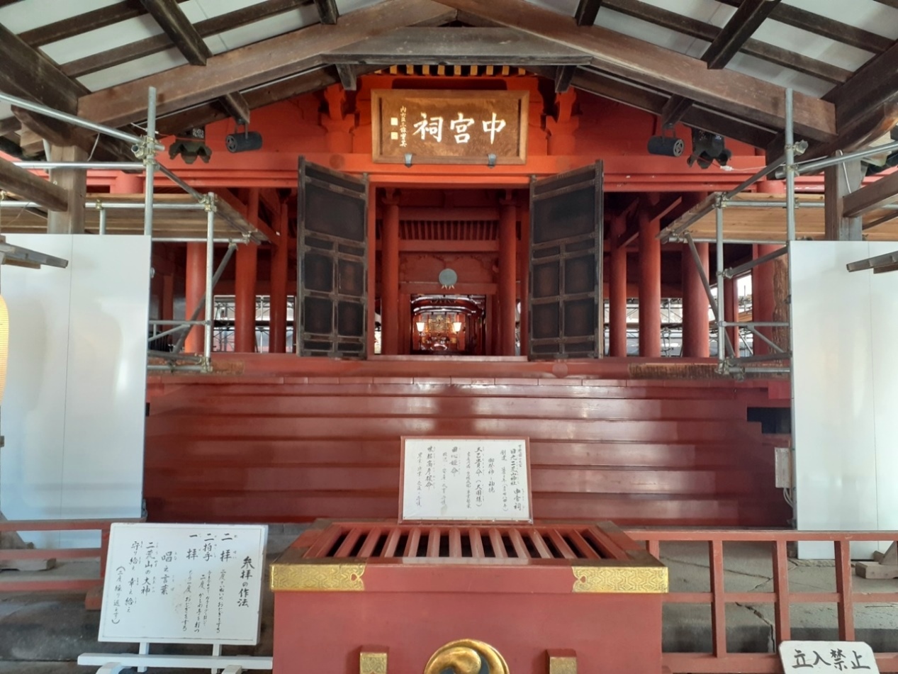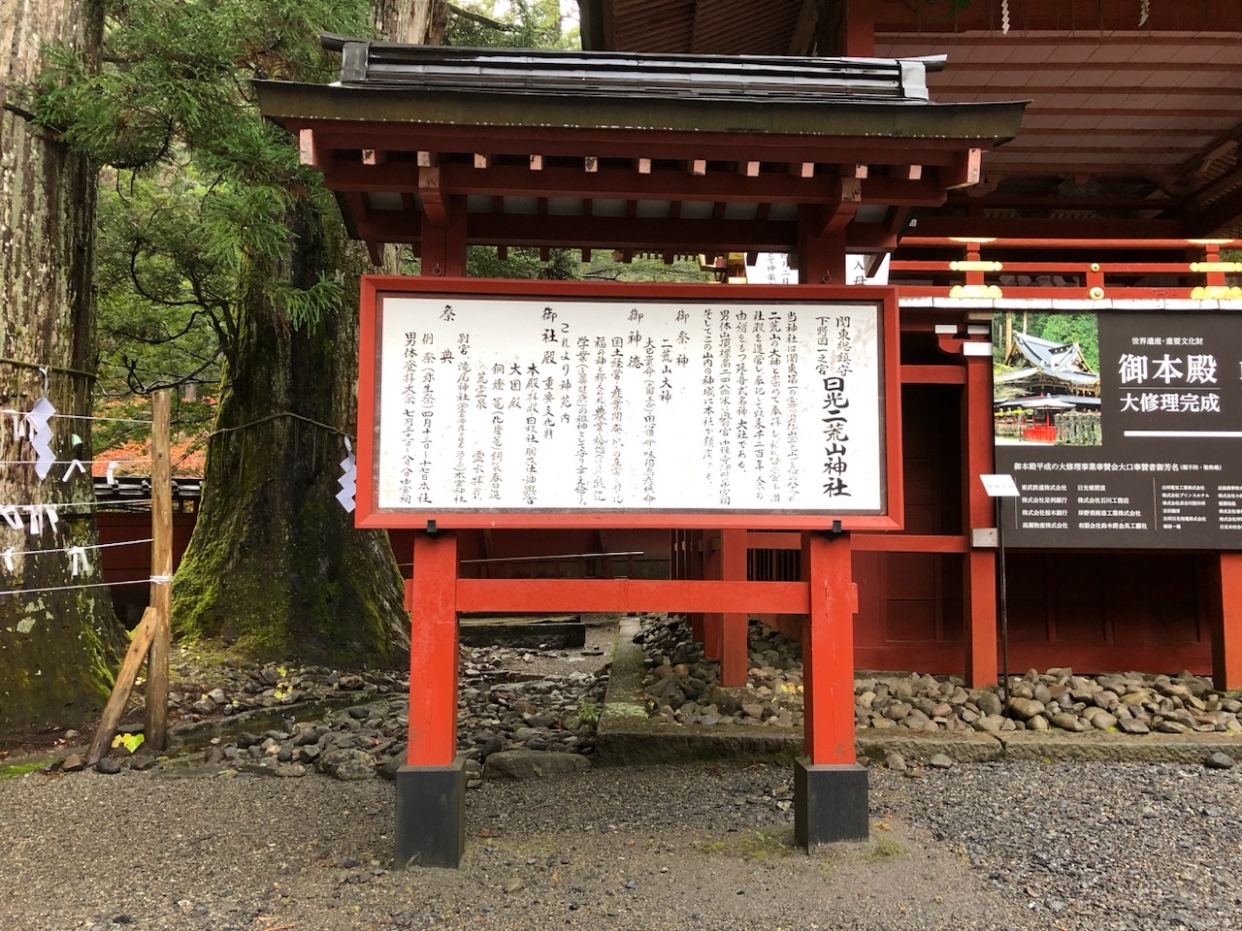 今回日光二荒山神社中宮祠に参拝したわけであるが、反省点が一つ。拝殿が改装中でテント等覆われていたとはいえ、事前のリサーチが十分とはいえず、また当日も案内板を見ていたにも関わらず、当日予定がかなり多くあった(基本家族旅行がメインの中での参拝)気持ちの余裕の無さからか、拝殿から左側方向に祀られている「神楽殿」「中宮祠のイチイ」「山霊宮」らの参拝ができなかったことが非常に残念。やはり予定は余裕のあるスケジュールにしなければいけなかったとつくづく痛感した。