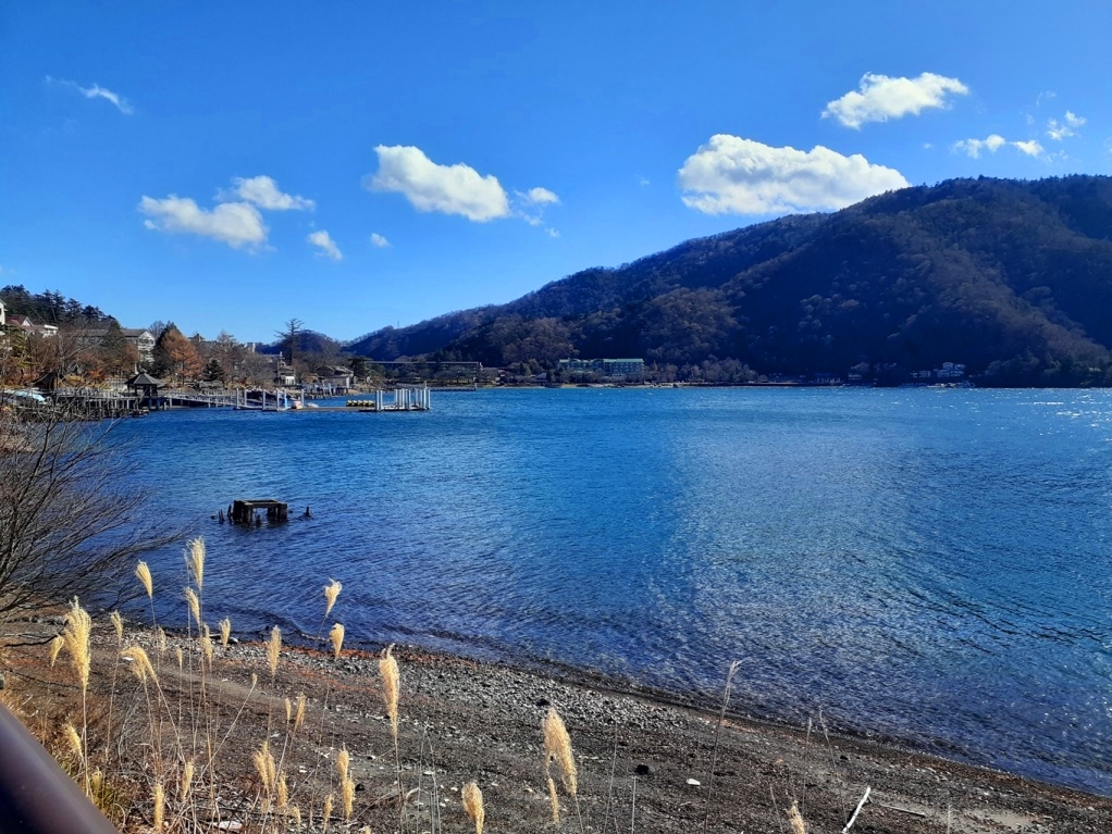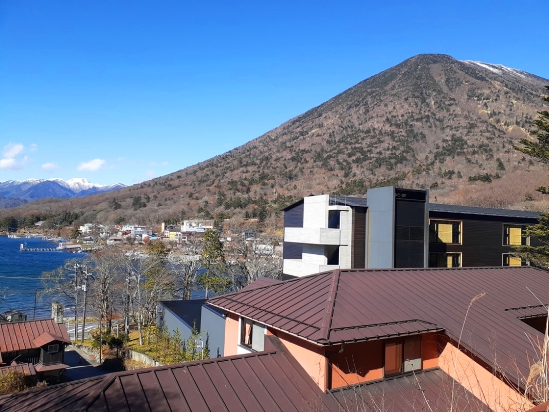 中禅寺湖、及び男体山の風景。