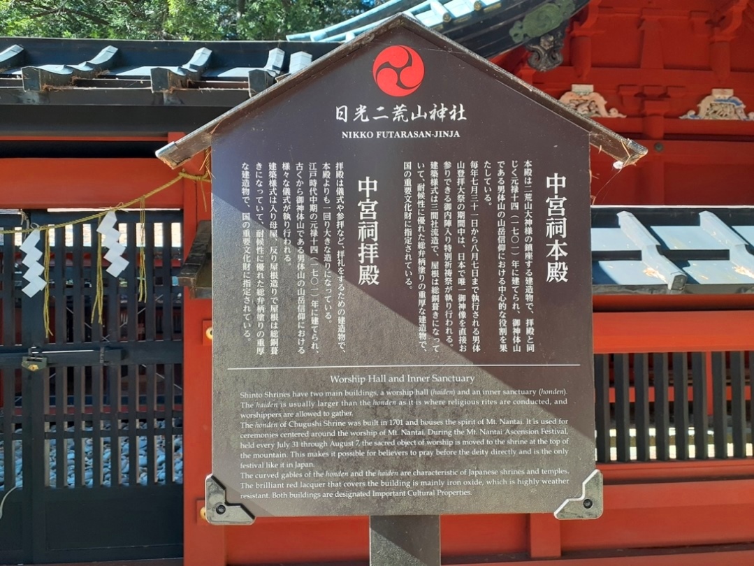 この社は霊峰・男体山の中腹にあるため、中宮祠の背後には男体山が間近に見え、古くより男体山をご神体山と仰ぐ社と同時に山岳修験のの一拠点であったというのにも納得できる。