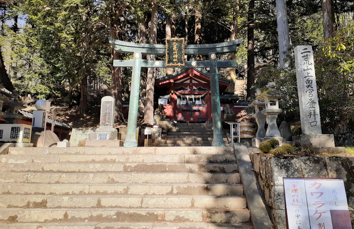 当地は古くから男体山登山の表口とされ、現在も登拝口(登山口)が本殿横に位置している。
