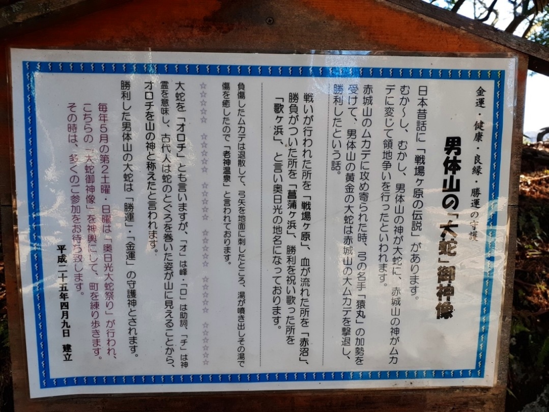 勝利した男体山の大蛇は「勝運」・「金運」の守護神とされます(中略)