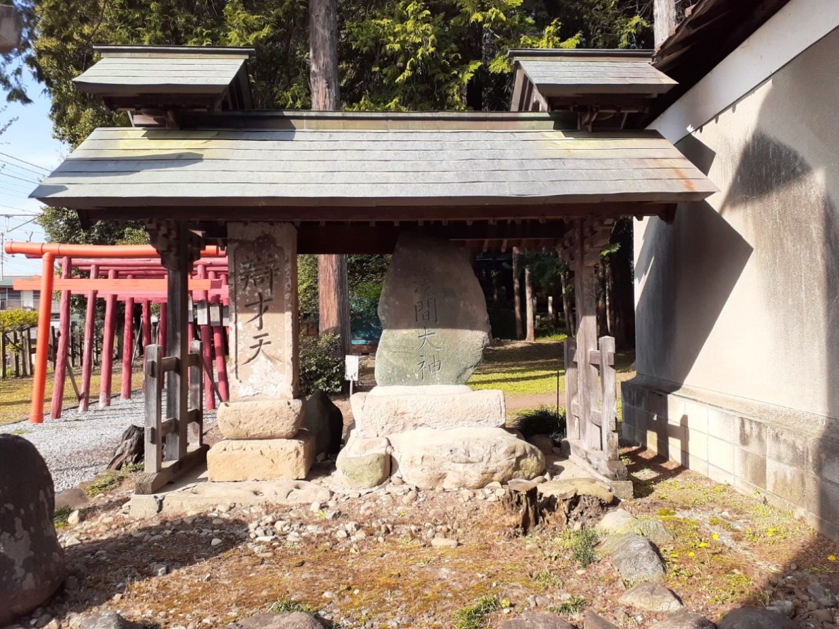 鳥居の右側並びに祀られている「弁財天」「浅間大神」の石祠。
