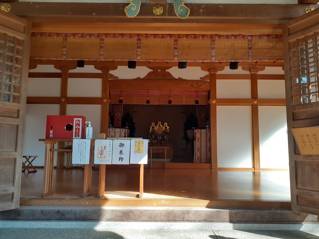 この社の拝殿は神楽殿のように正面が全く見開き状態で不思議な造り。