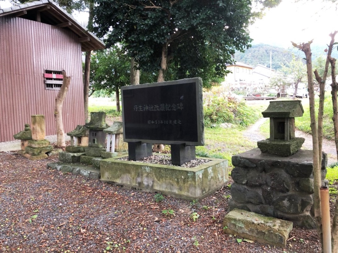 拝殿手前左側に祀られている境内社・石祠群 正面鳥居の右側に祀られている「道祖神」等