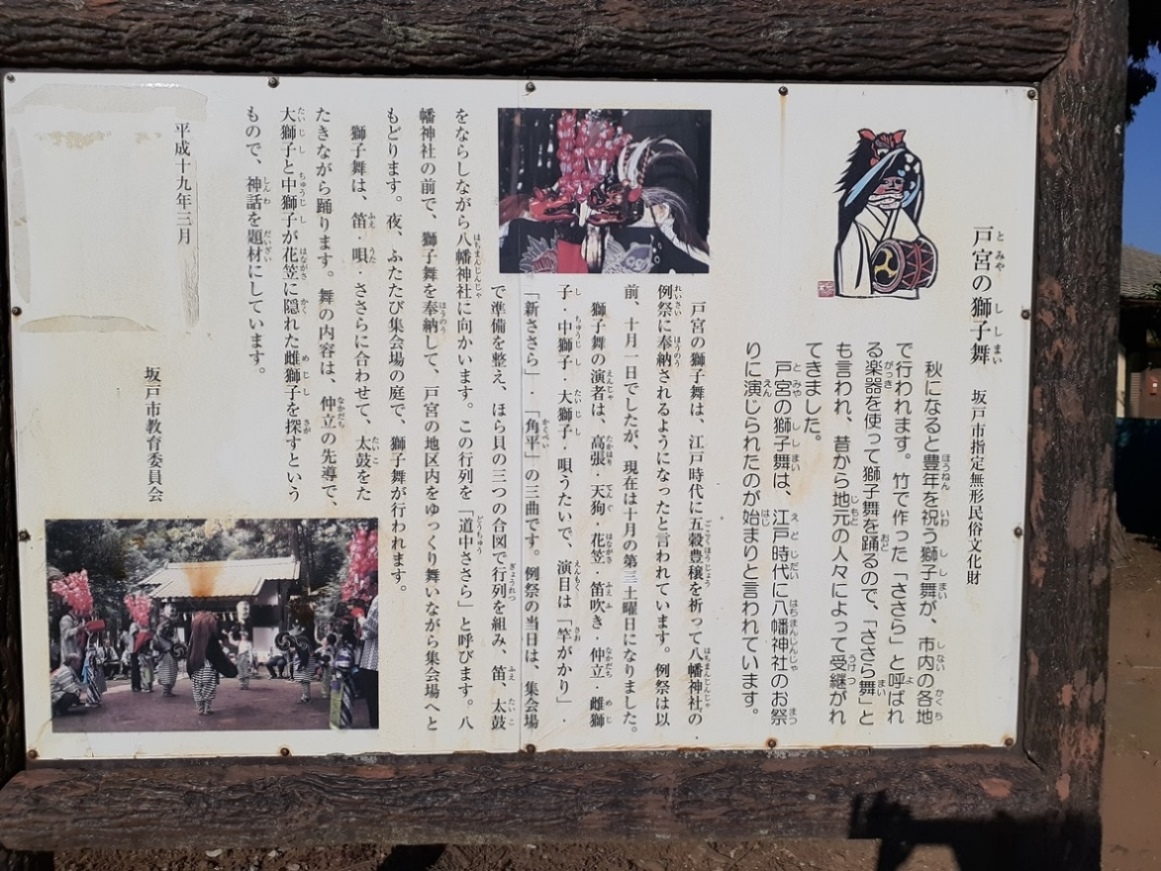 鳥居の左側に設置されている「戸宮の獅子舞」の案内板