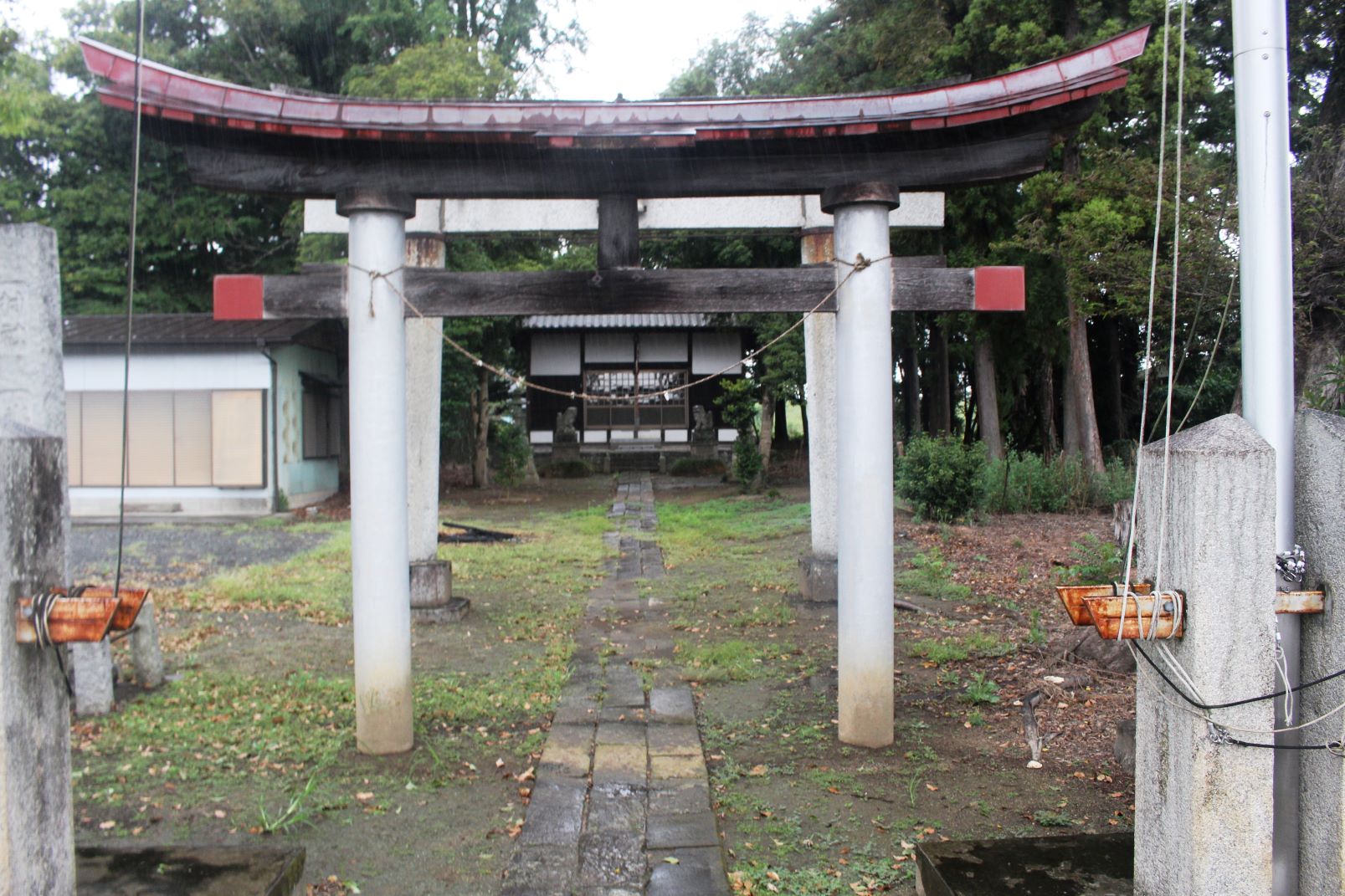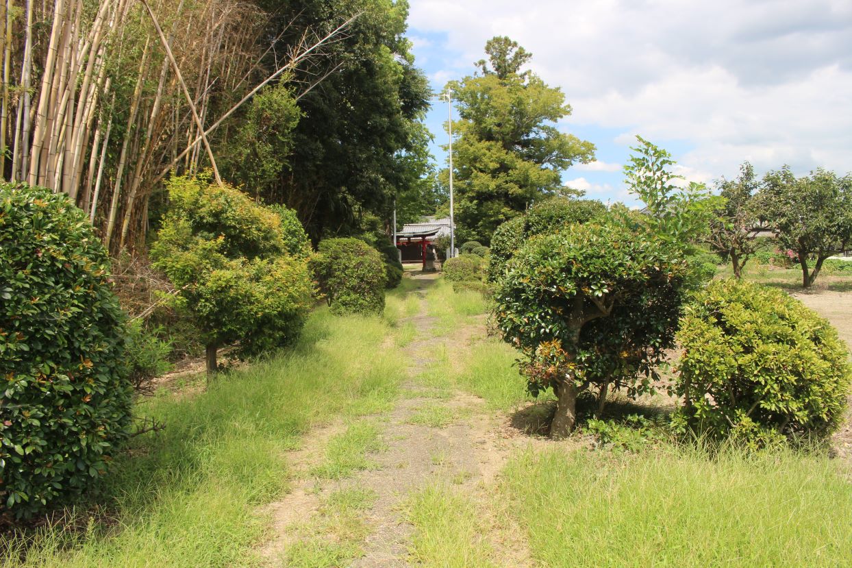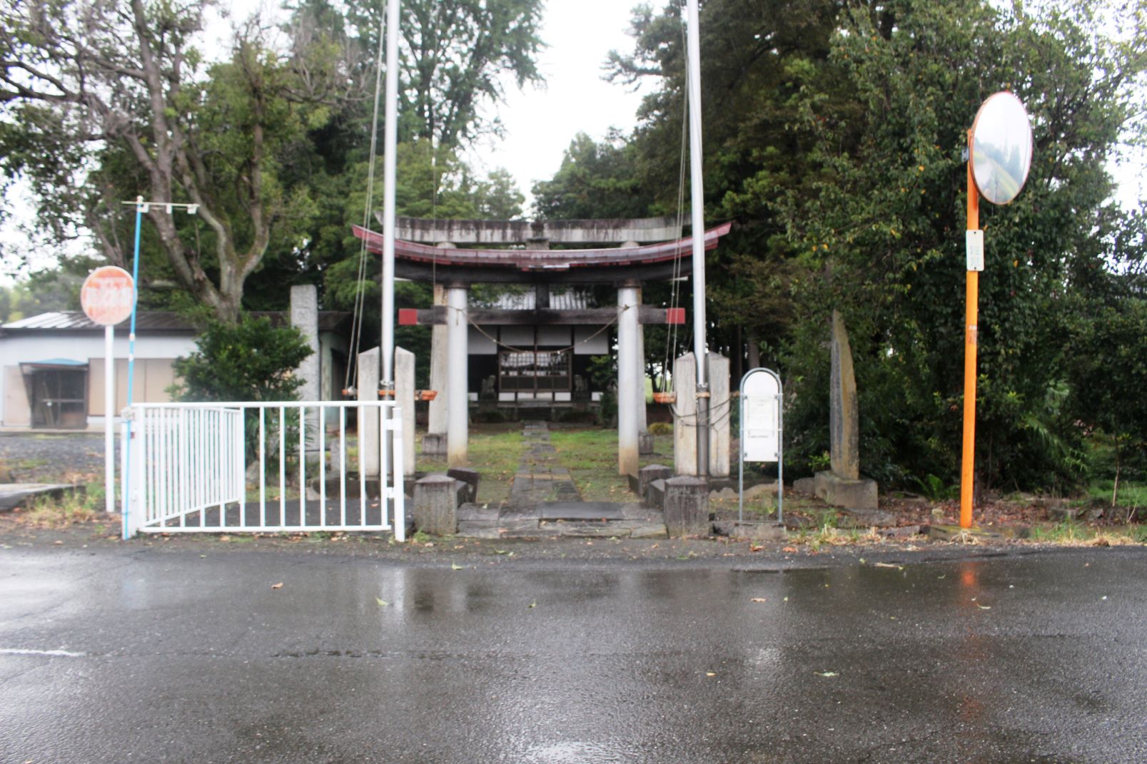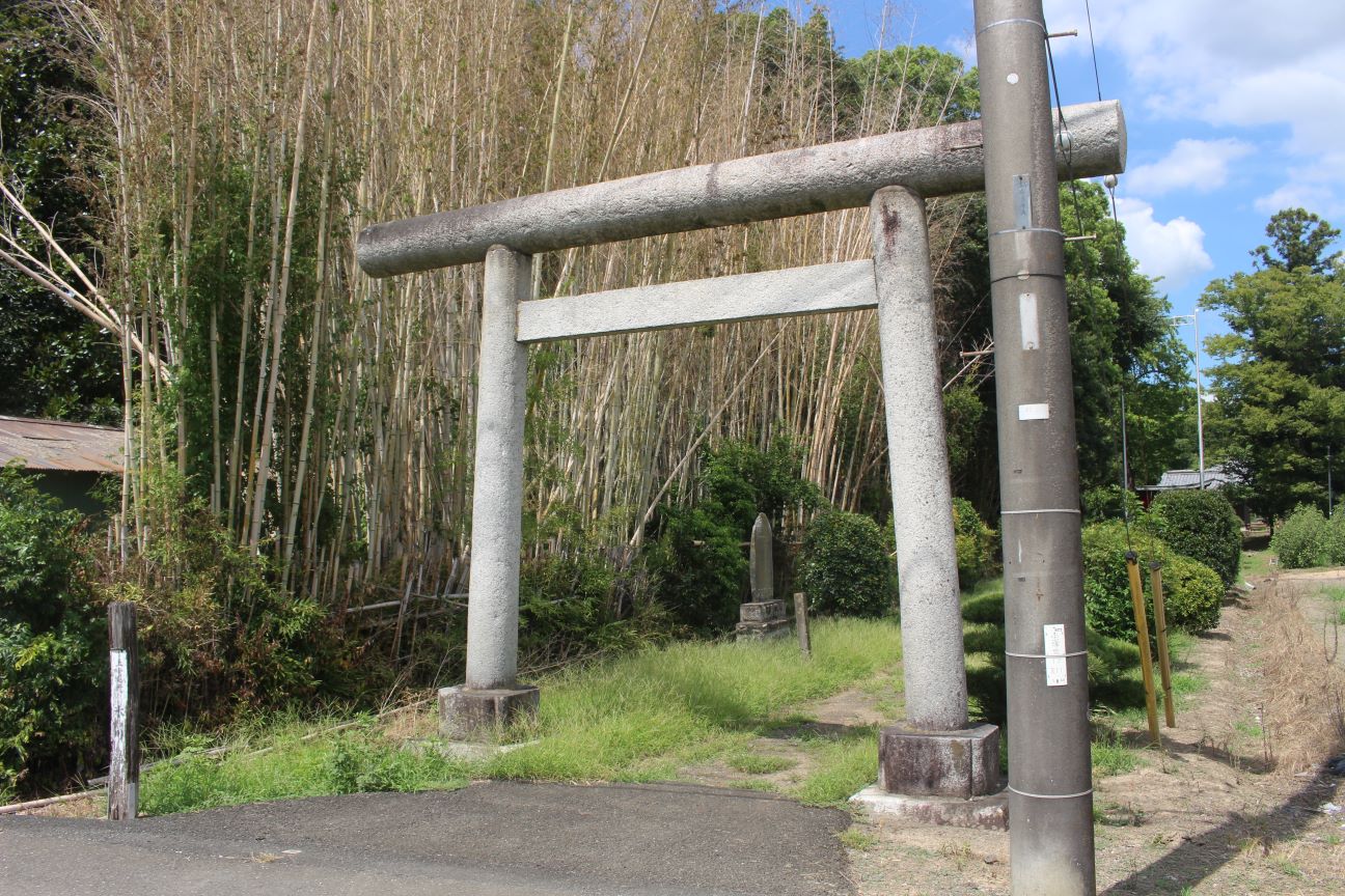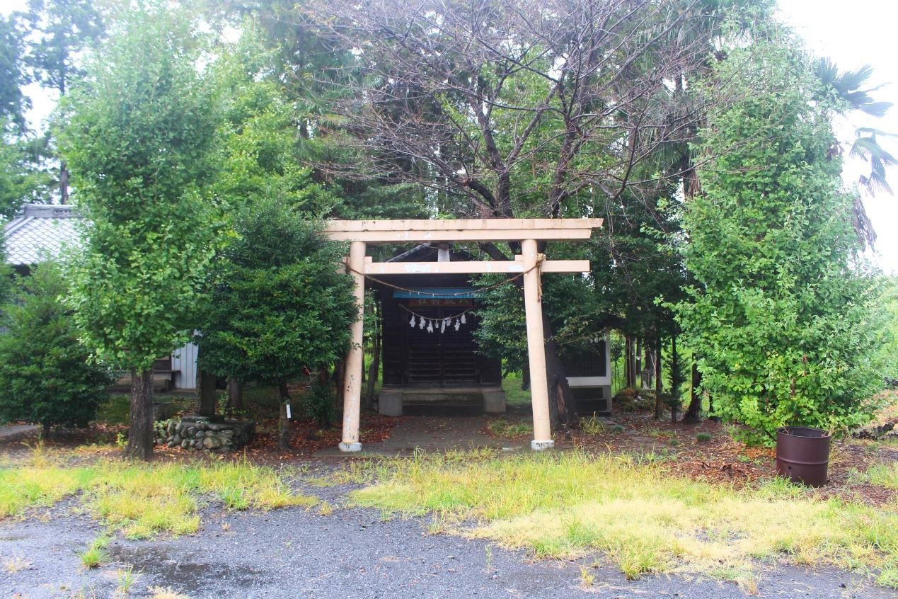 おそらく社殿と共に鳥居も近年改修されているのであろう。朱色の両部鳥居は、周囲が田畑風景の中において、ひと際目立ち、社号額も目新しくなっている。境内もきれいに手入れされており、この地域の方々の社に対する思いを感じた次第だ。