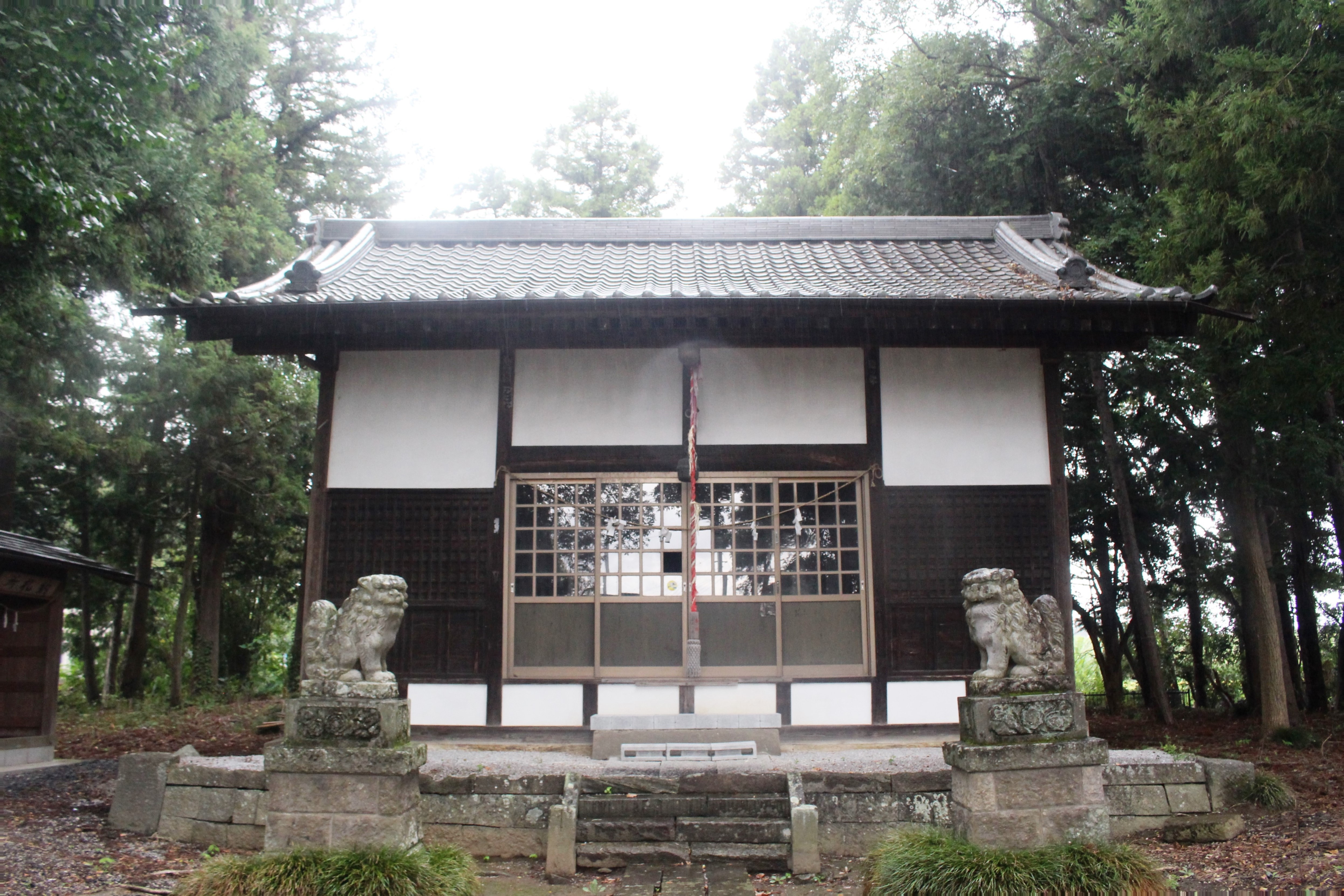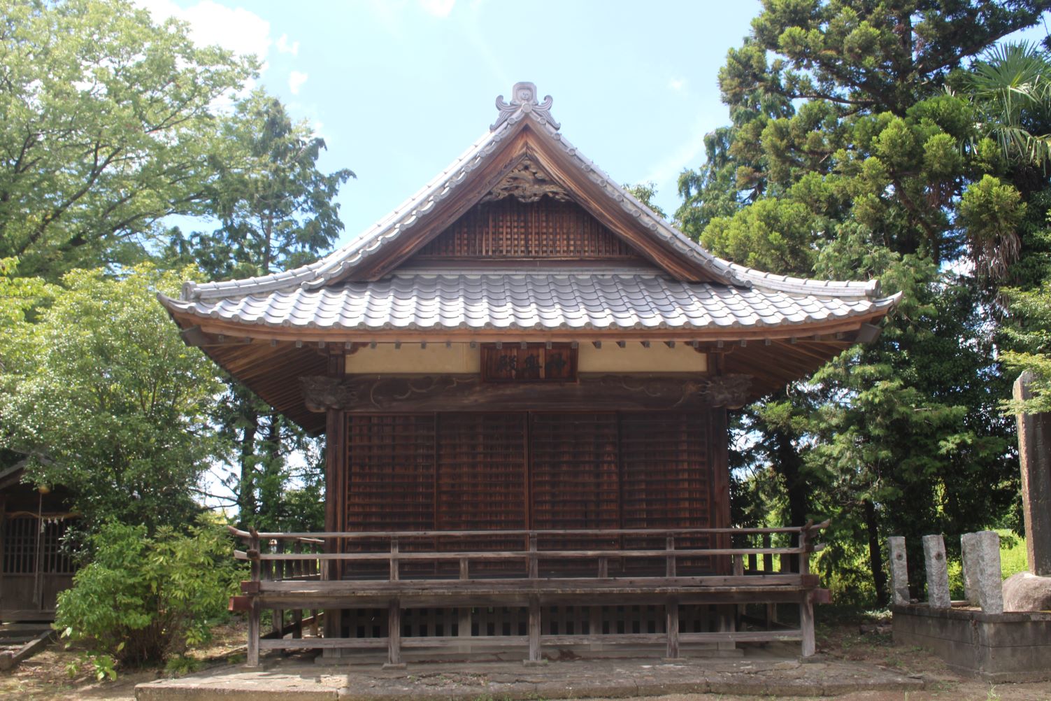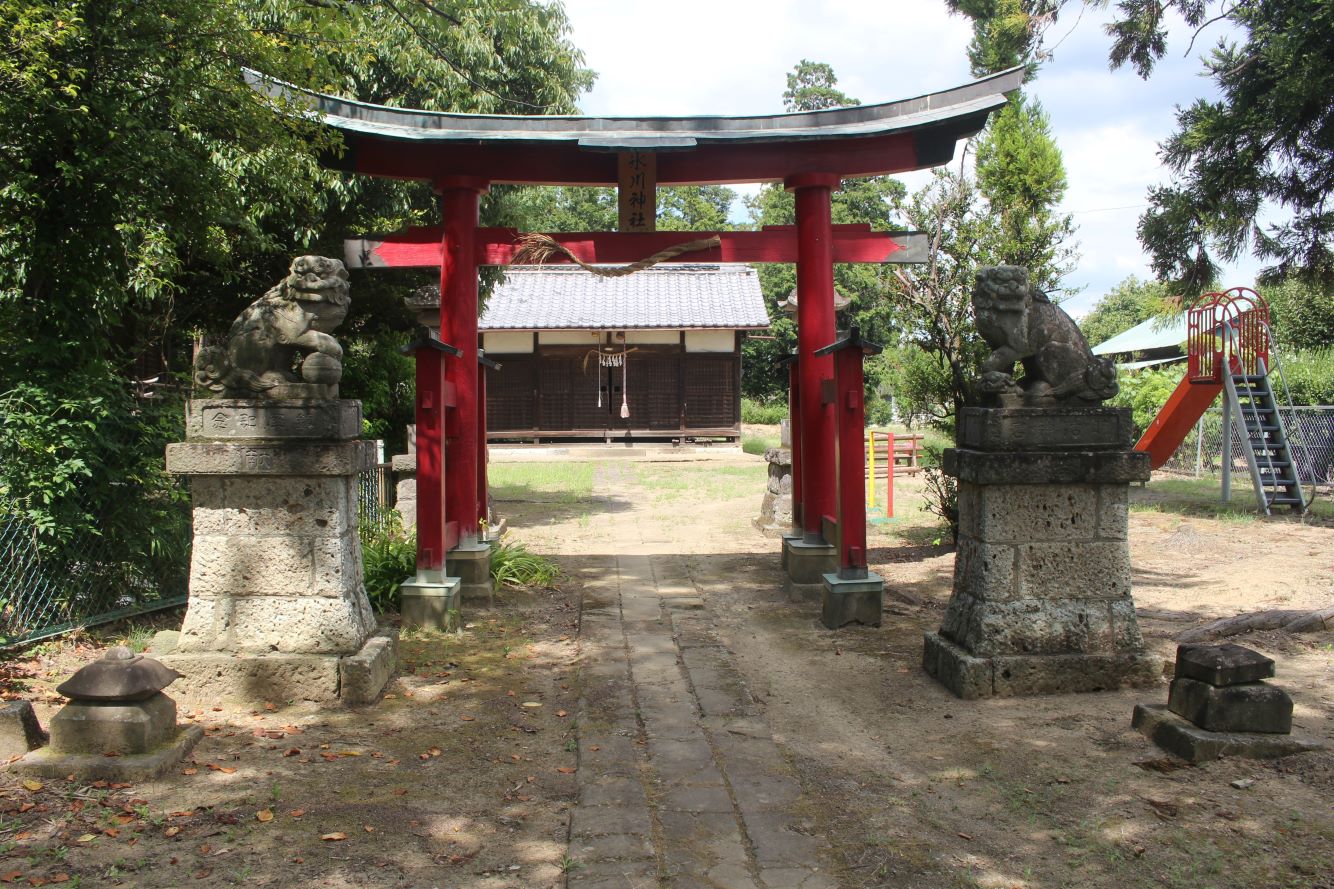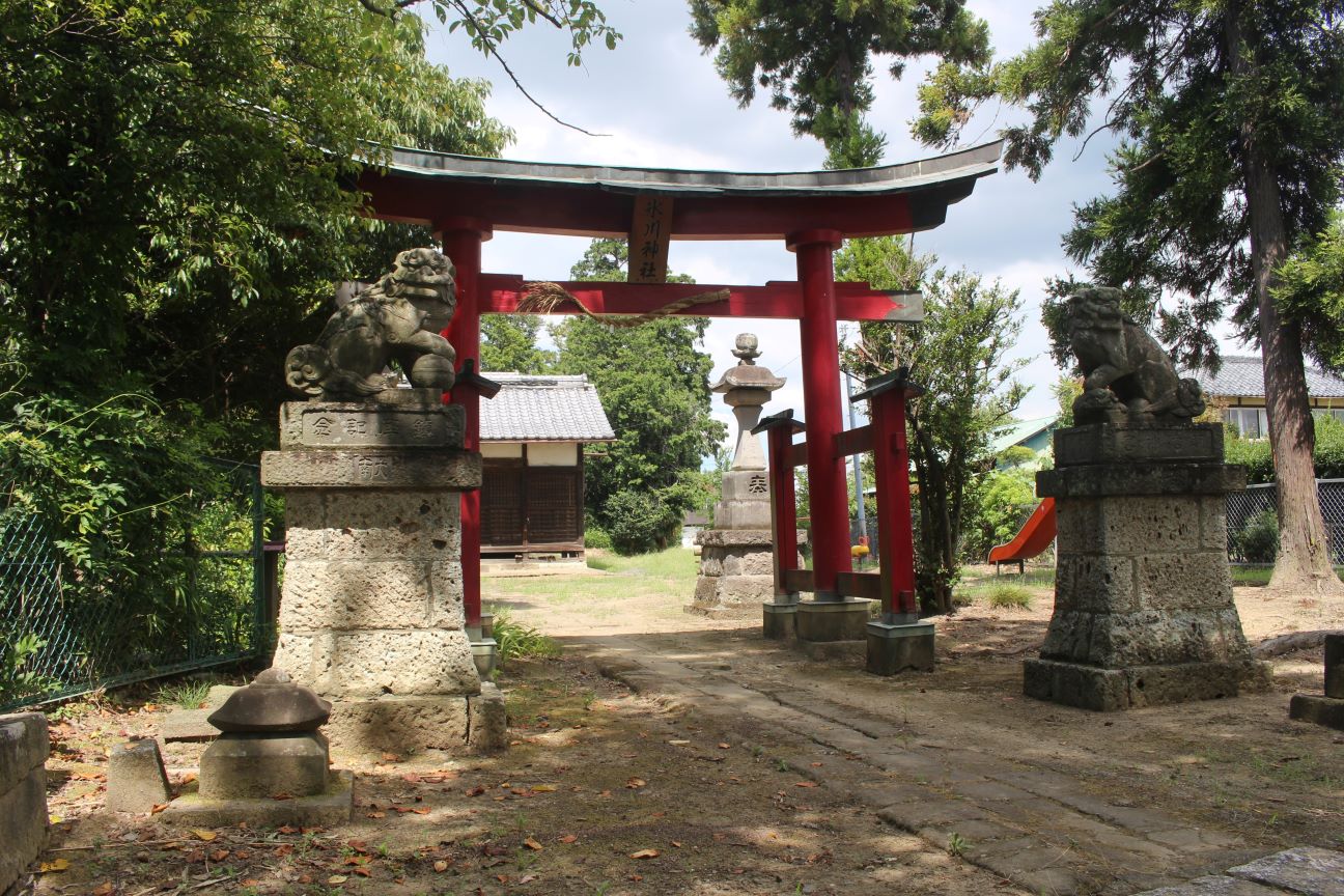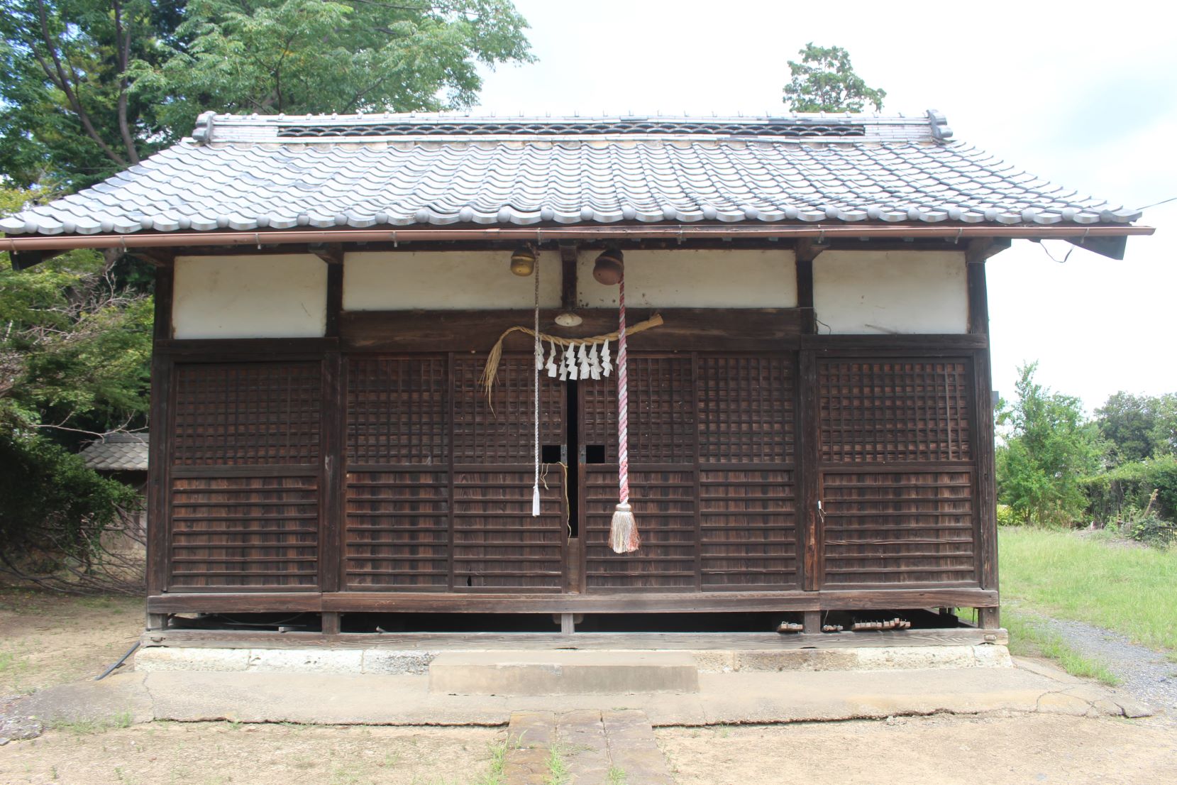 おそらく社殿と共に鳥居も近年改修されているのであろう。朱色の両部鳥居は、周囲が田畑風景の中において、ひと際目立ち、社号額も目新しくなっている。境内もきれいに手入れされており、この地域の方々の社に対する思いを感じた次第だ。