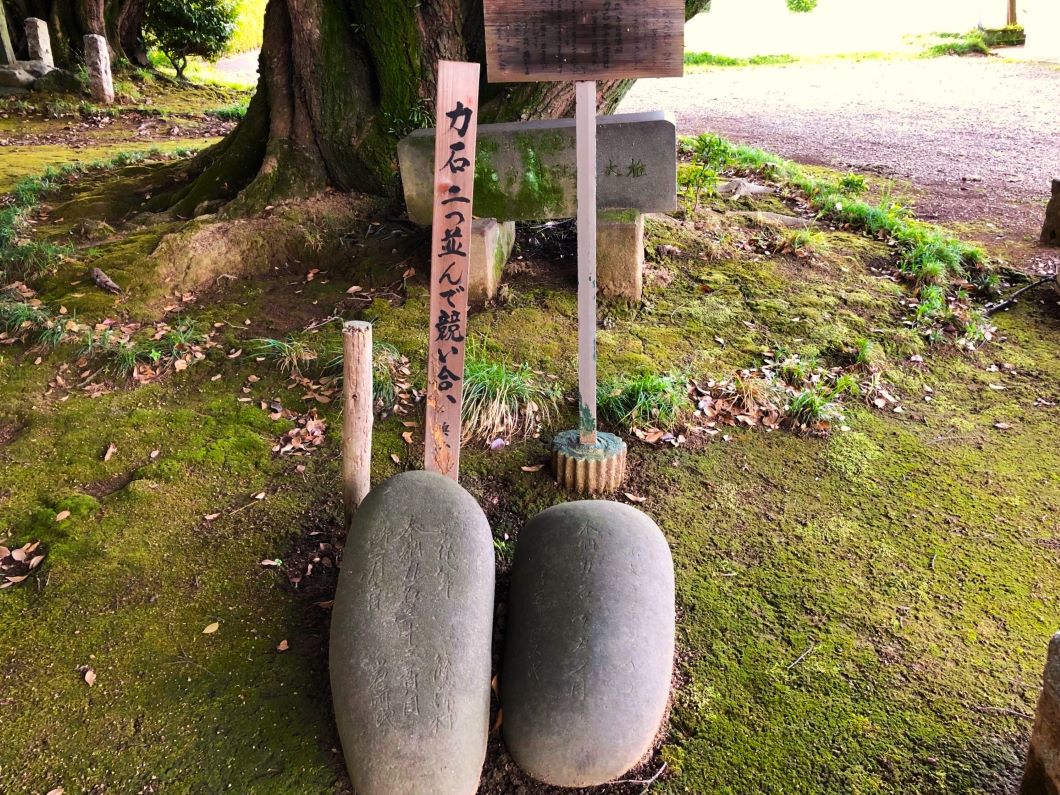手水舎の左隣には「力石」とその説明板があり(写真左・右)。