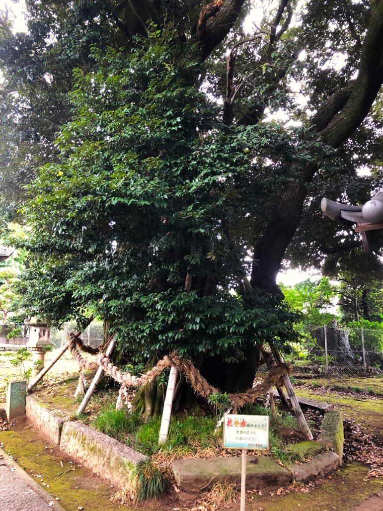 高さ13m、根廻り6.7m。枝張りは、南北に17m・東西に14mの迫力のあるこの大きな濃緑のかたまりが、市内最古の社の佇まいと妙にマッチングするから不思議だ。桶川市指定天然記念物。