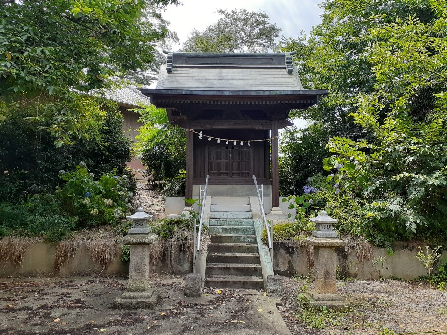 貞観十一年(八六九)十月十八日に創建され、高尾村、荒井村、北袋村、石戸宿村、下石戸上村他の鎮守としたと言う。また、境内には厳島神社も祭られている。