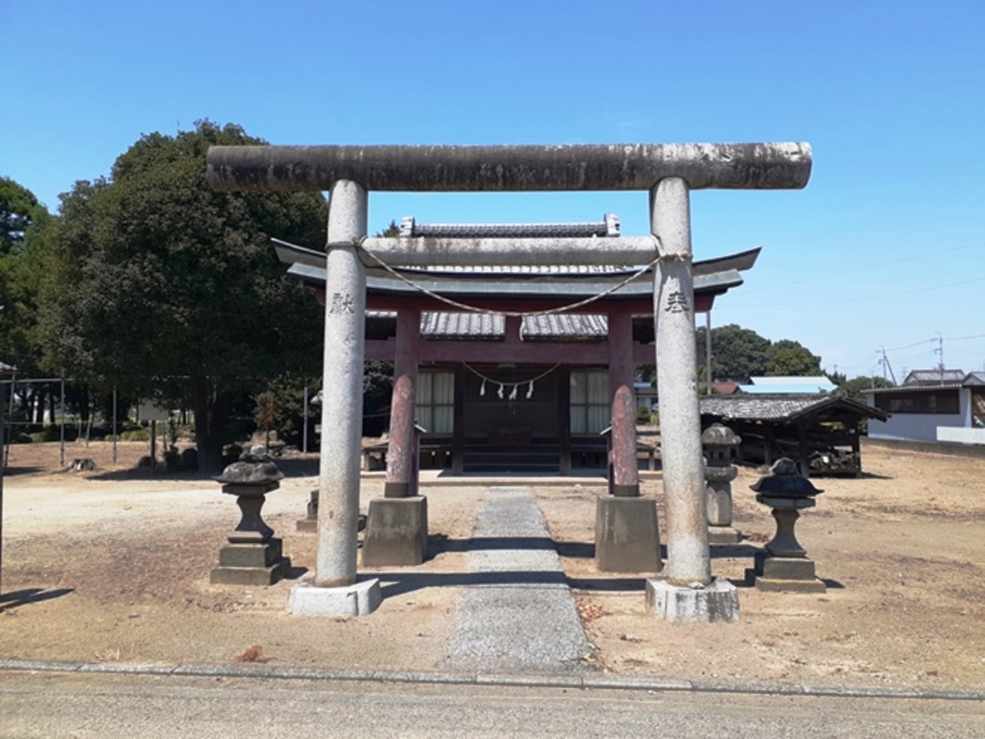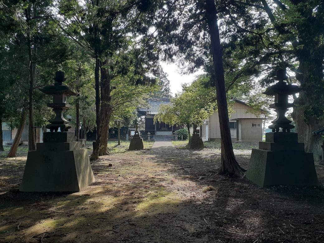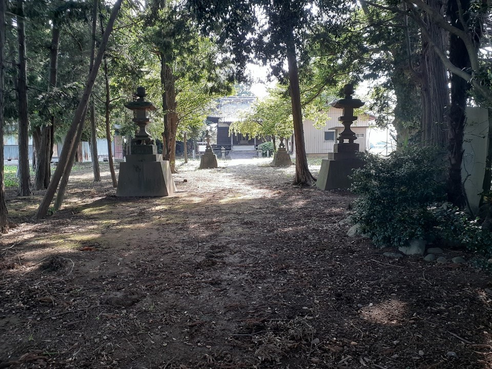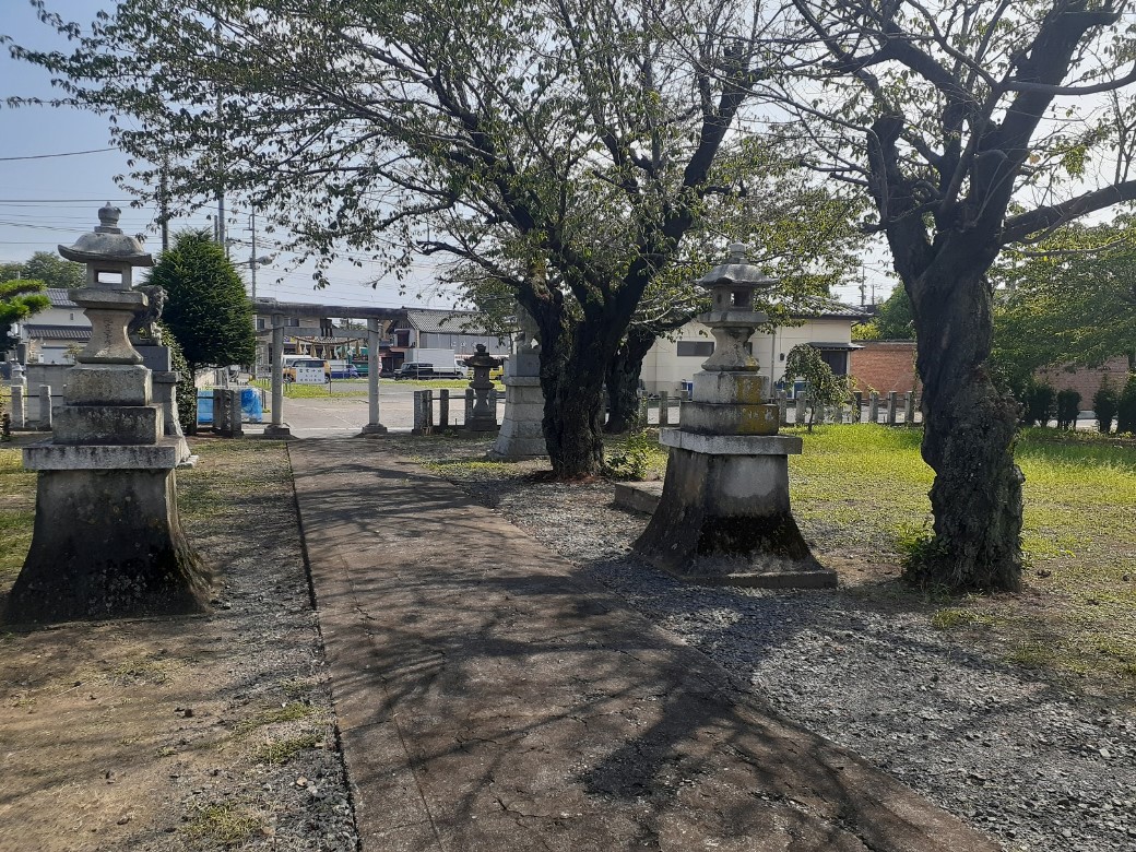 一の鳥居から北方向に参道が続き、その先に二の鳥居がある。二の鳥居から先が境内となる。