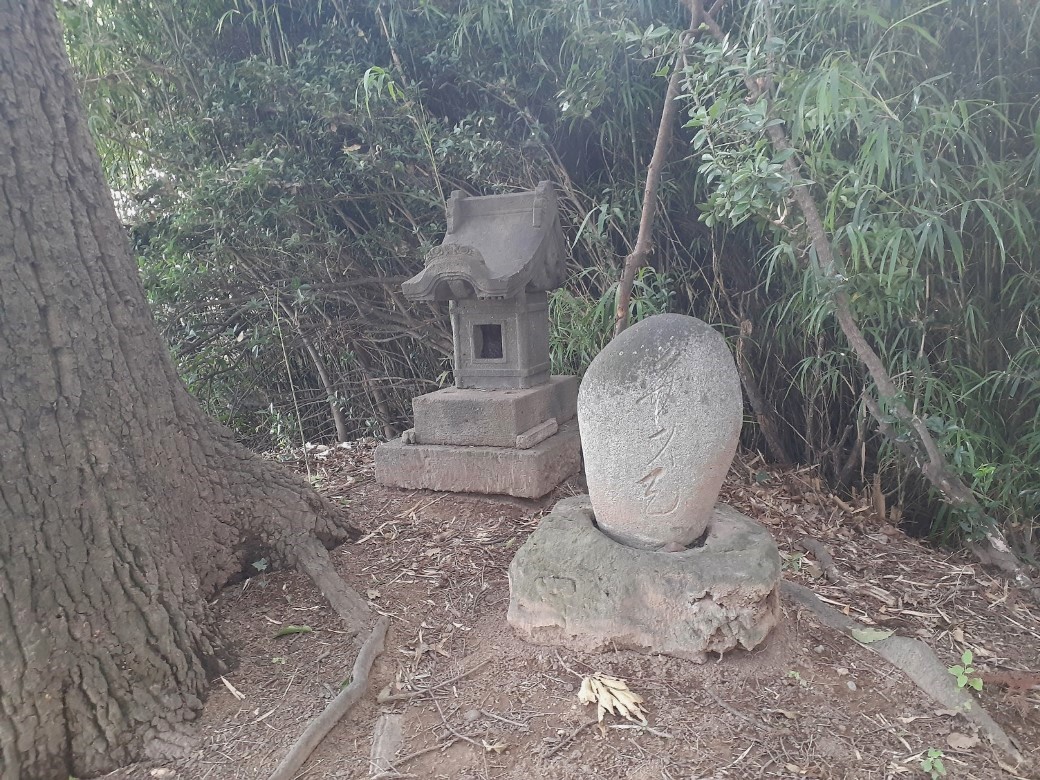 石碑の奥には嘗て巨木・大木があったのだろうか。その切株が残っている。