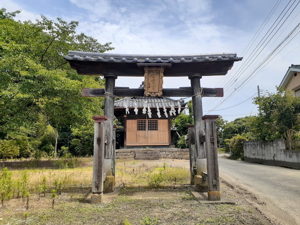 三保谷宿氷川神社から埼玉県道74号日高川島線を北西方向に進む途中、進行方向右手側にぼんやりと社号標柱が見えたので、偶々立ち寄った社である。偶然とはいえ、このお社との出会いに感謝しつつ、社号標柱の前にある適度な駐車空間に車を停め、厳かな気持ちで参拝を開始した。