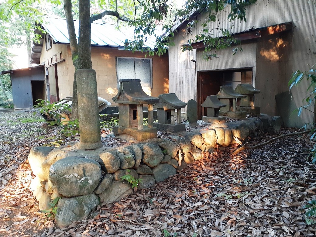 境内に祀られている石祠(写真左)、また鎮座する境内社(同右)